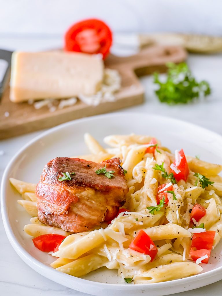 Bacon Wrapped Pork w/ Cajun Pasta